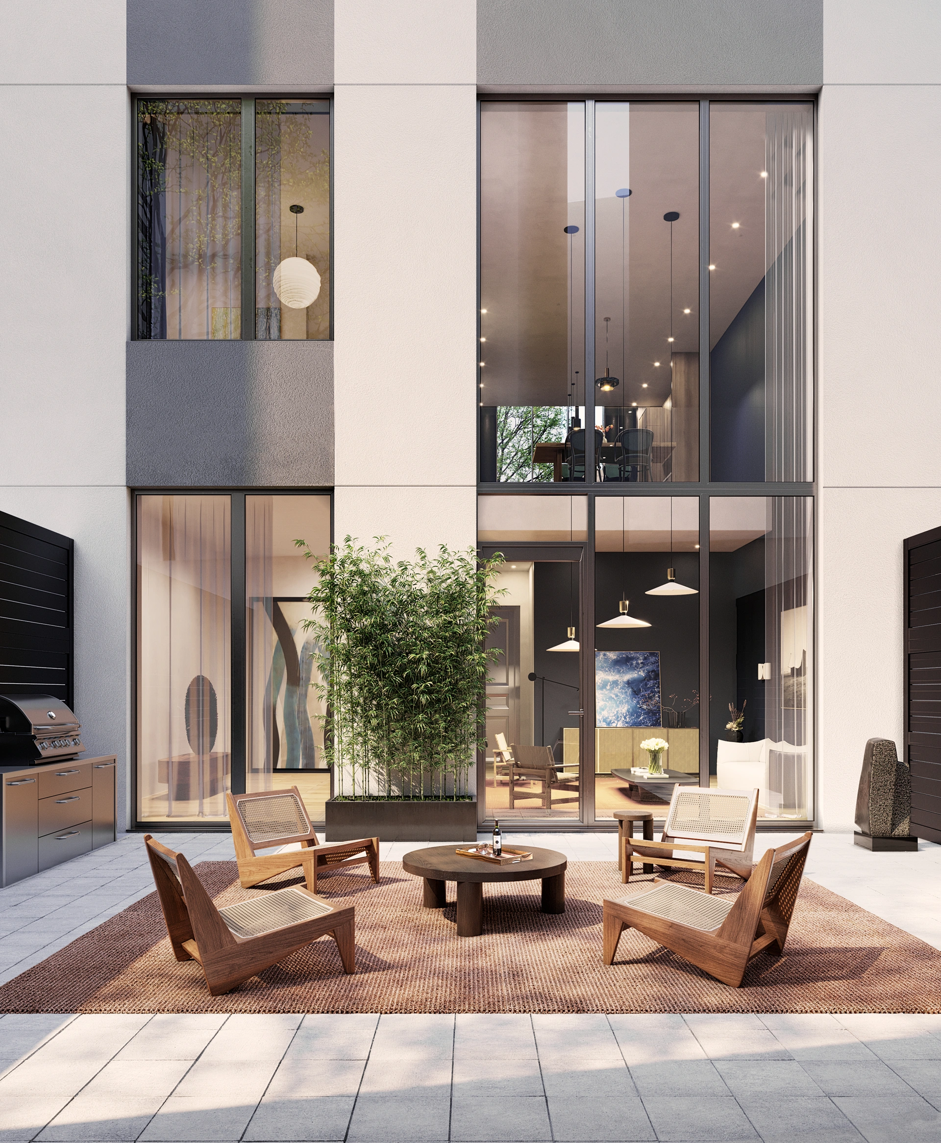 with private outdoor spaces. A movie lounge,