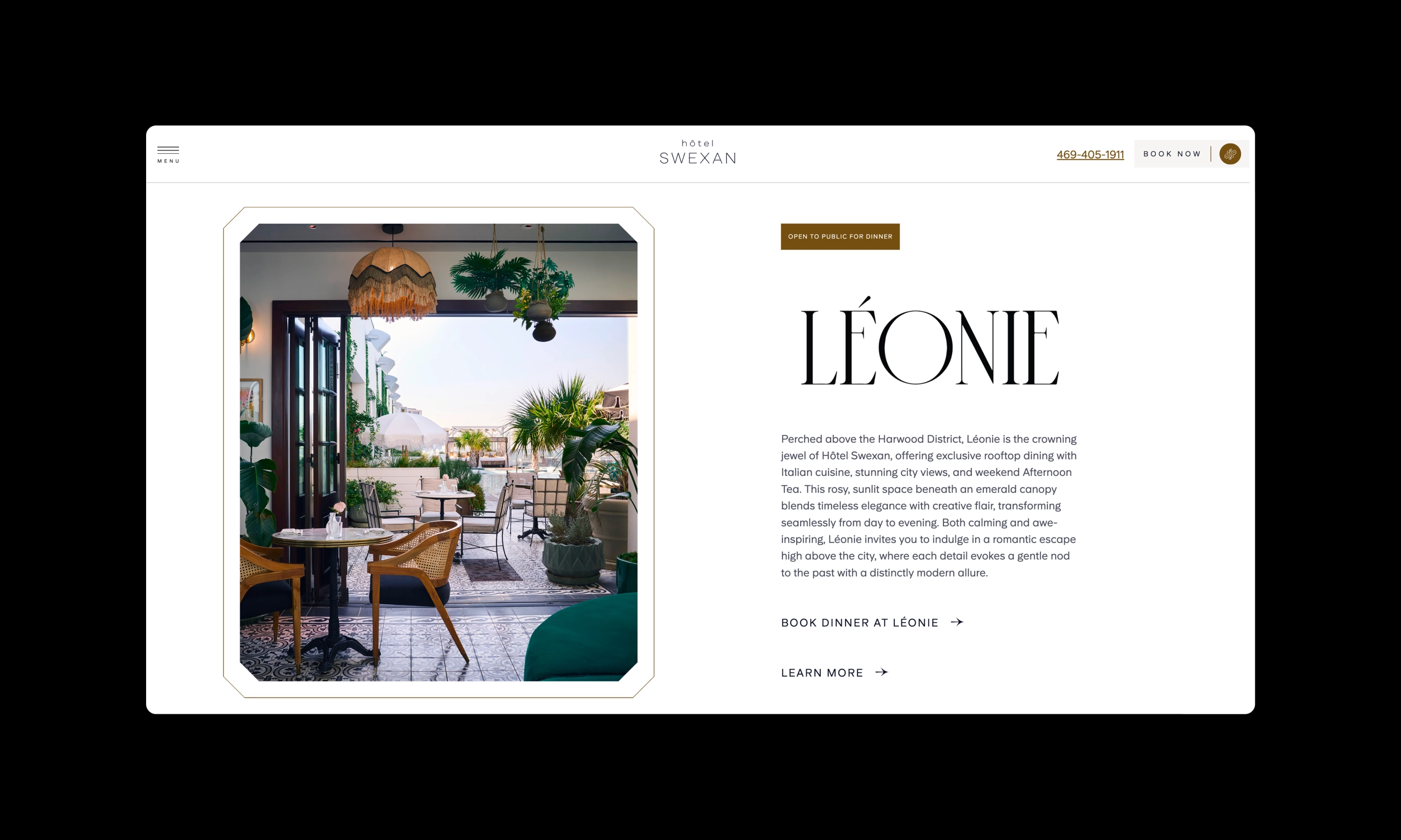 Time Studio has been a true creative partner to Harwood for more than five years. What I am most proud of is that the vision was never diluted. It stayed consistent from idea to execution. Hôtel Swexan is now a Michelin Key property and Stillwell’s has earned Michelin recognition two years in a row.